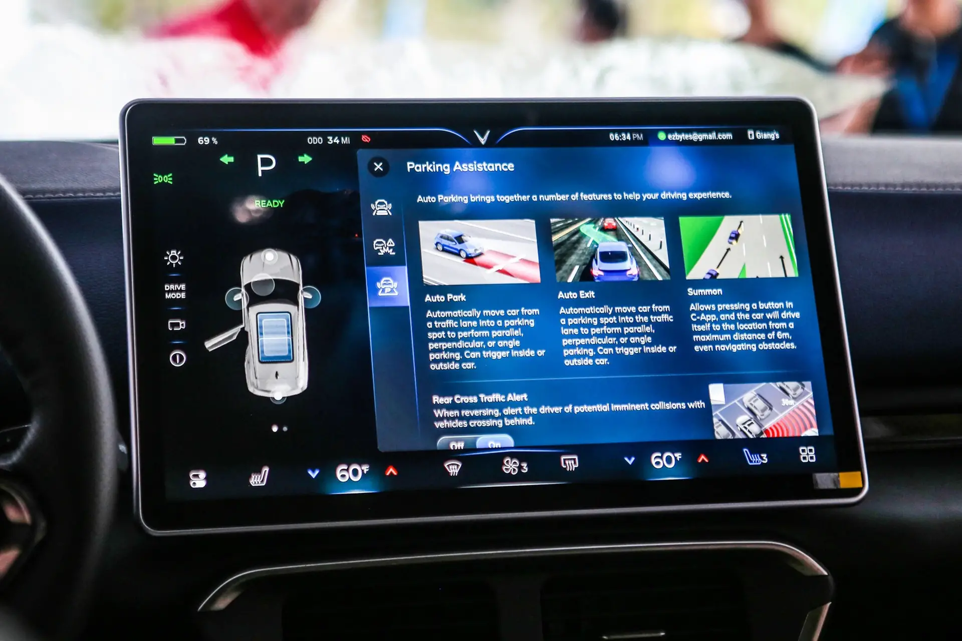 With a width of 1,891 mm and a height of 1,676 mm, coupled with a weight of 1,805 kg, the VF 8 ensures a spacious and comfortable interior for passengers. The independent front suspension, dual-wishbone and independent rear suspension, multi-link, offer stability in cornering and superior performance across various terrains. The VF 8 also features disc brakes on all wheels, enhancing safety and precision.