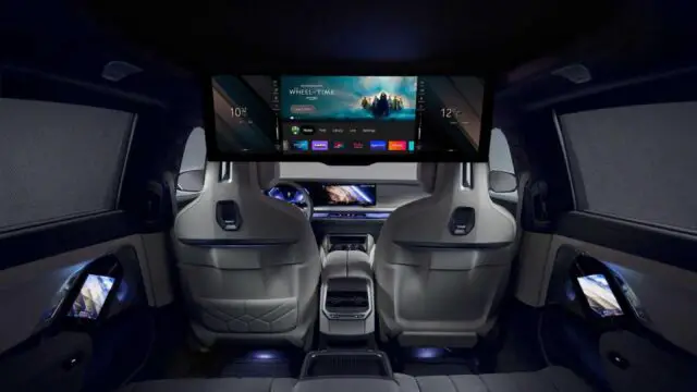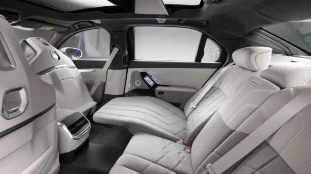 The i7 is a showcase of cutting-edge technology, offering a heads-up display (HUD) on the windshield, a Bowers & Wilkins Diamond sound system with 39 speakers, gesture controls, wireless charging, and much more.