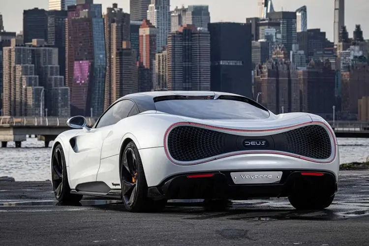 Unveiled at the 2022 New York International Auto Show, the hypercar âDEUS Vayanneâ is the result of a collaboration between the Austrian company, Williams Advanced Engineering, and Italdesign. The manufacturers reveal that the Vayanne achieves its astounding power of over 2,200 horsepower (1,640 kW) through the platform developed by Williams Advanced Engineering, enabling impressive feats of performance.