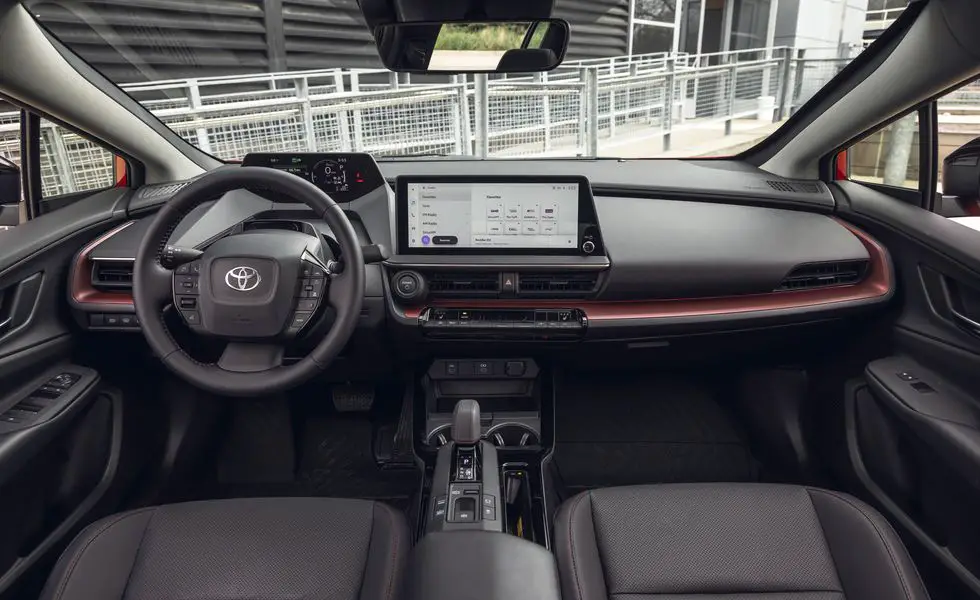 The interior of the Toyota Prius Prime showcases a contemporary and luxurious design, providing comfort and convenience for passengers. With ample space to accommodate five individuals, the cabin offers adjustable leather seats, dual-zone automatic climate control, a cutting-edge 11.6-inch touchscreen, premium JBL sound system, panoramic moonroof, and more.