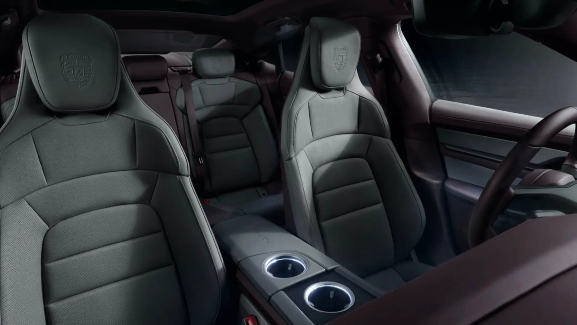 The cabin is a true testament to Porscheâs commitment to luxury and sustainability. High-quality materials, such as wood, carbon fiber, and aluminum, are utilized in various configurations. The rear passengers can control certain functions using the integrated 5.9-inch touchscreen.