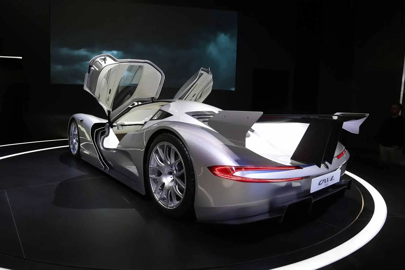 Beyond its high-performance electric powertrain, the Owl features a monocoque chassis and a carbon-fiber body. The vehicleâs aerodynamic design is an active focus, complemented by a carbon ceramic braking system with 10-piston calipers at the front.